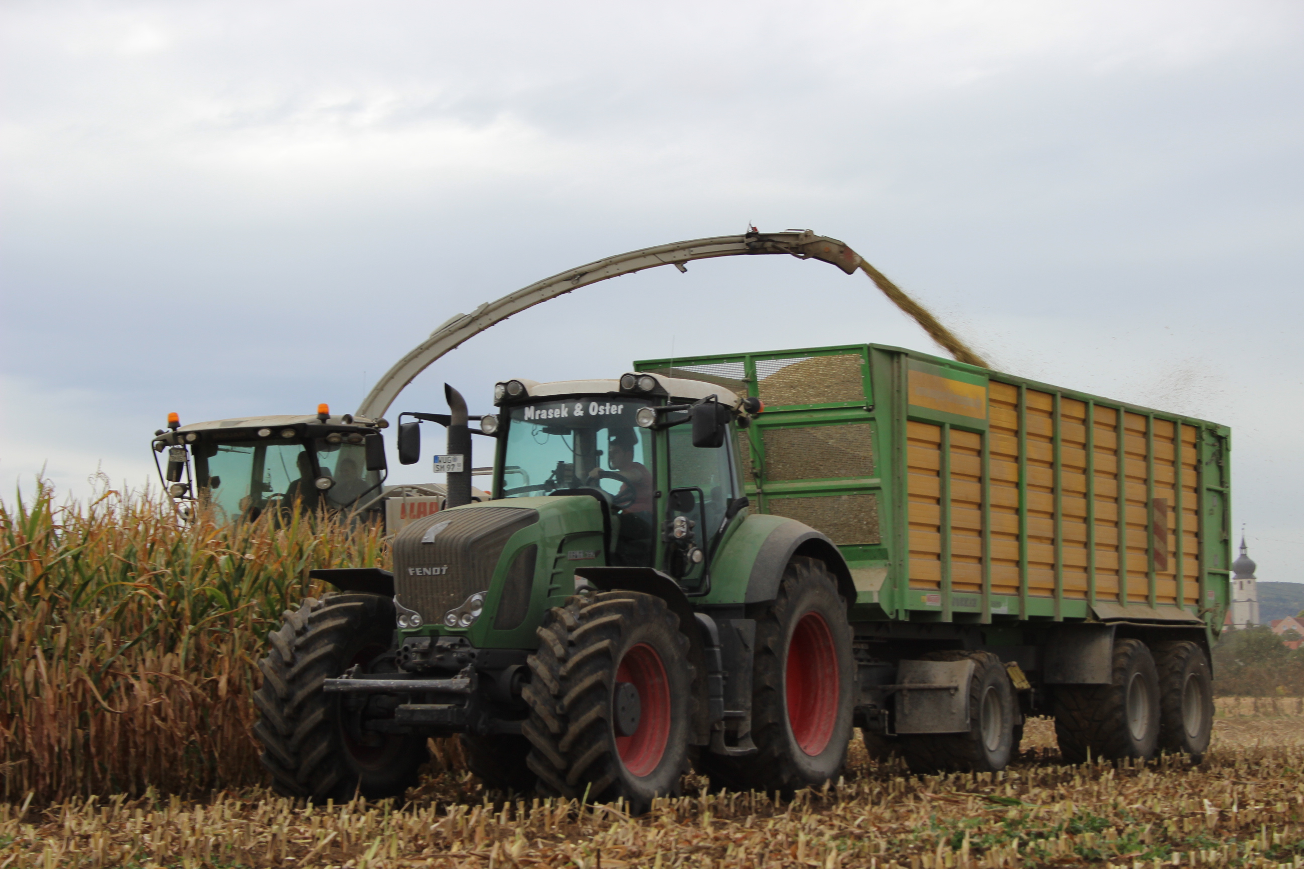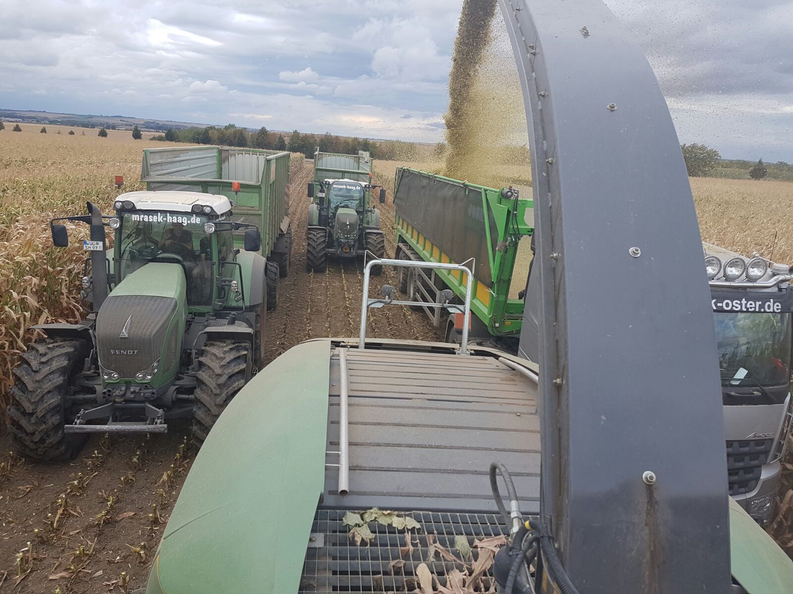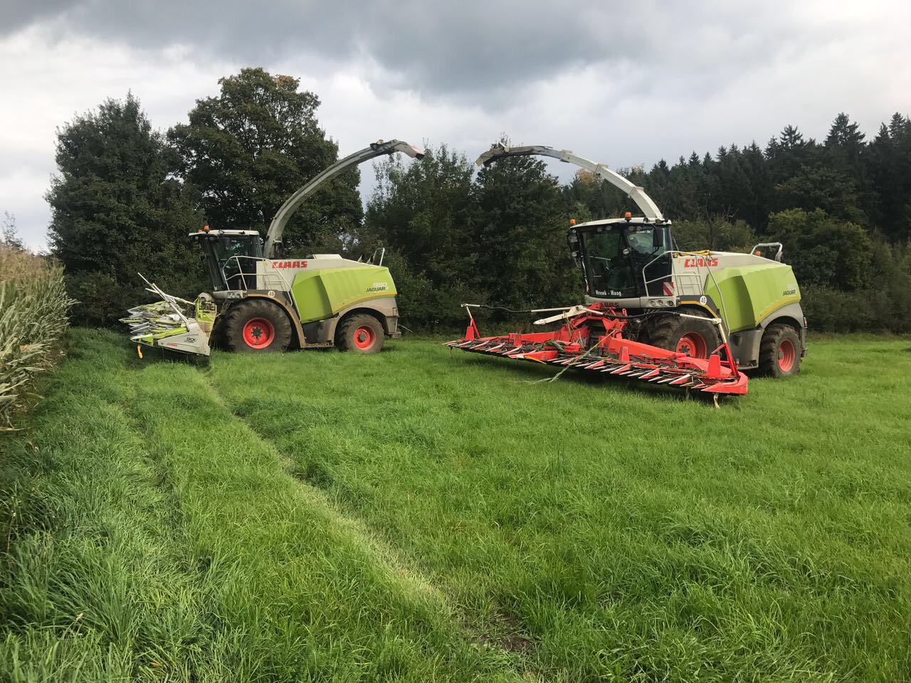 Zur Ernte von Mais stehen 7 leistungsstarke Feldhäcksler mit Arbeitsbreiten von 6 - 12 Reihen zur Verfügung.
