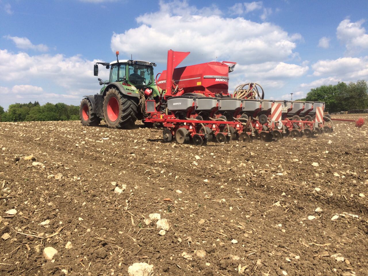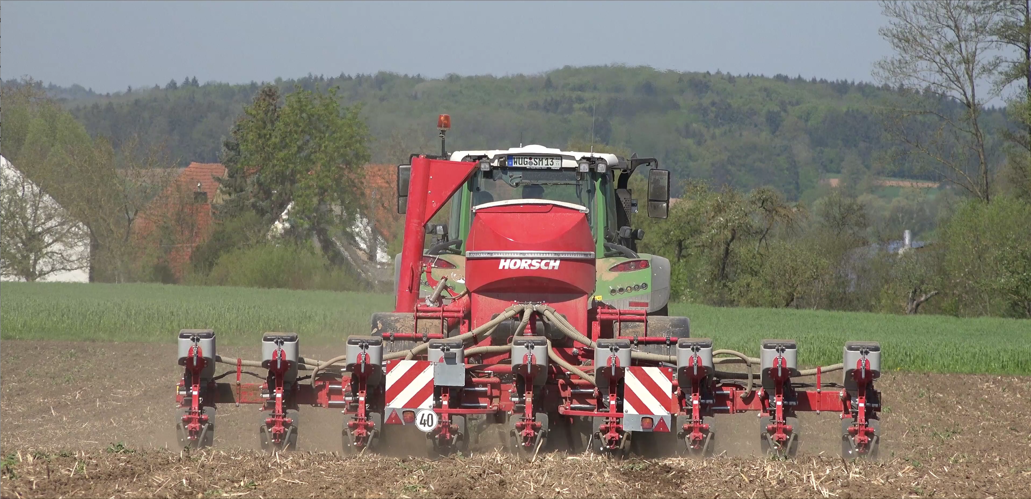 Zur Maissaat bieten wir ein 9-reihiges Horsch Maissägerät mit Unterfußdüngung, Mulchsaatschare, Dosierer für Mikrogranulat und Fahrgassenschaltung. Durch das Verschieben der Säeinheiten ist es möglich, sowohl 15 m als auch 24 m, Fahrgassen im Bestand anzulegen.